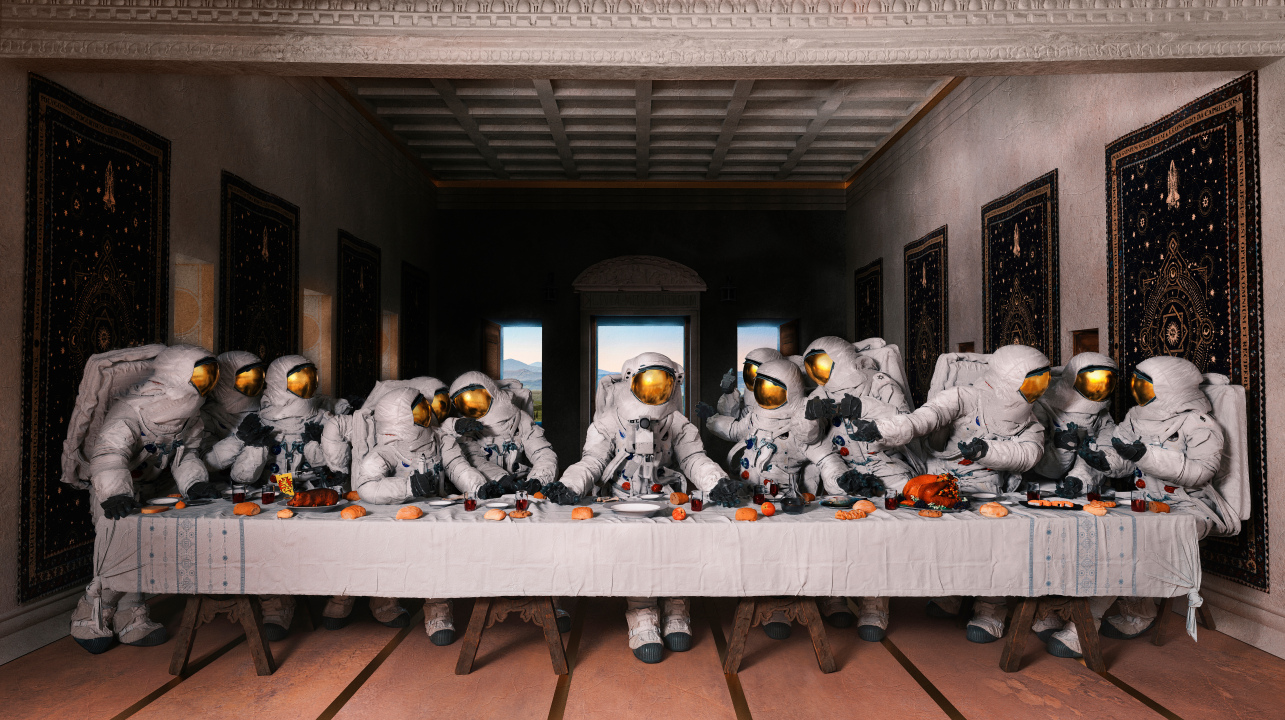 宇航员、最后的晚餐、扇子艺术、AI艺术、插图、绘画、数字绘画