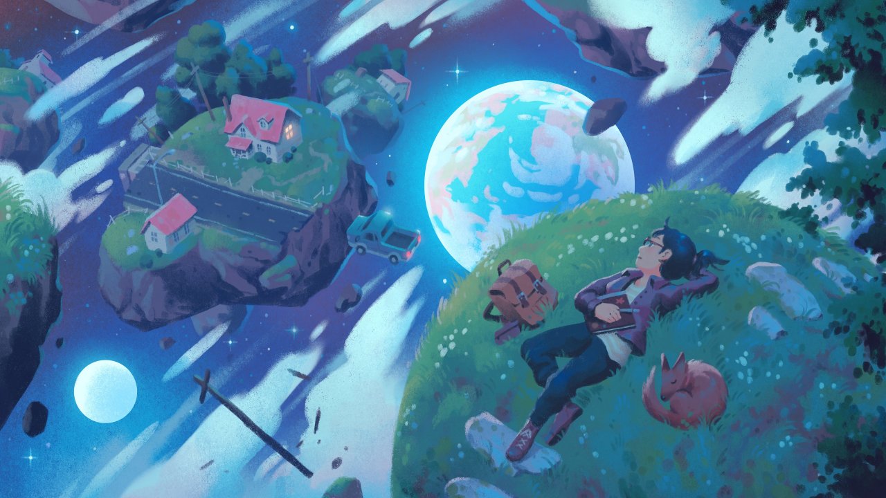 微笑、头发、长发、仰卧、躺着、辫子、蔚蓝、动漫、女孩