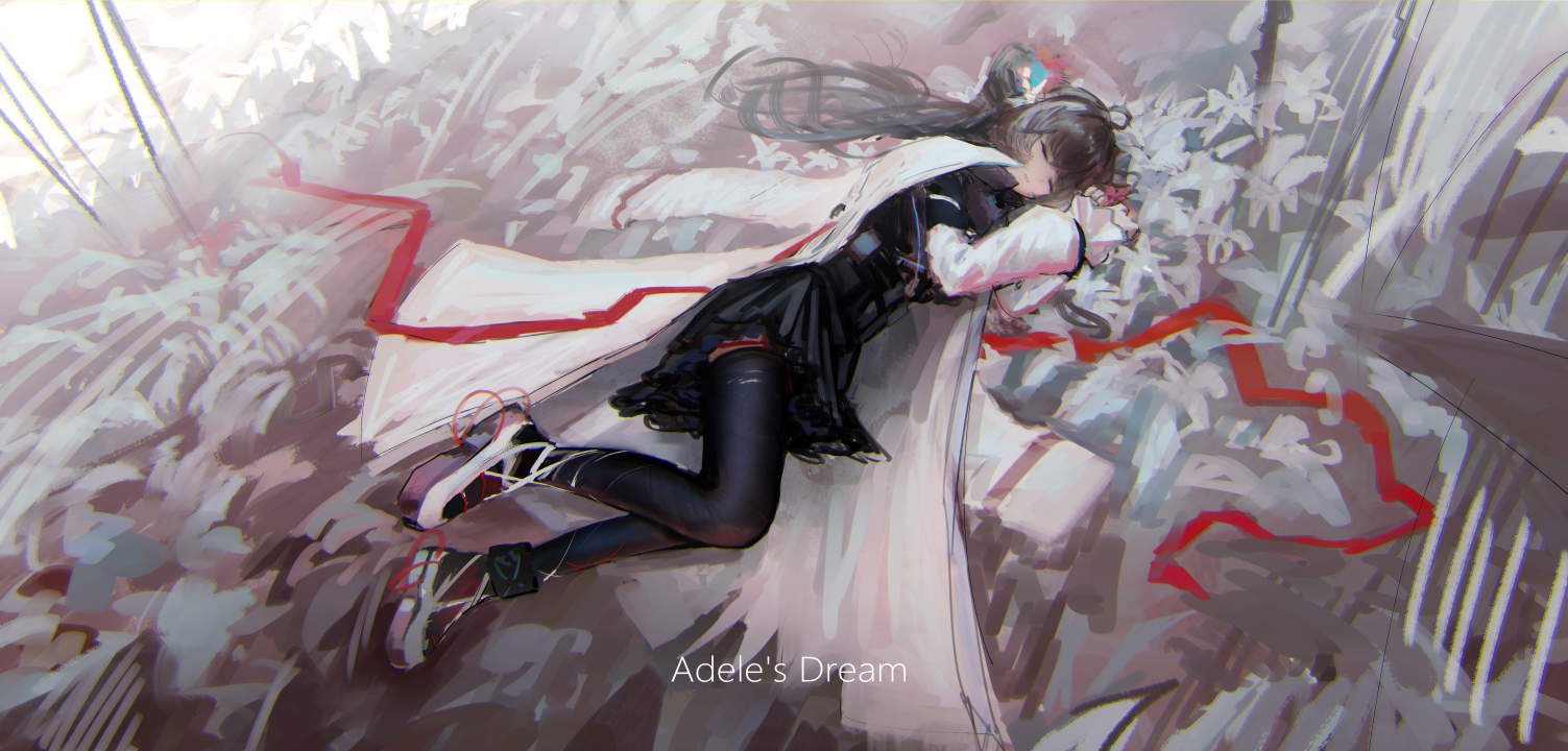 躺着、侧躺、闭着眼睛、长发、动漫、动漫女孩、睡觉、鲜花