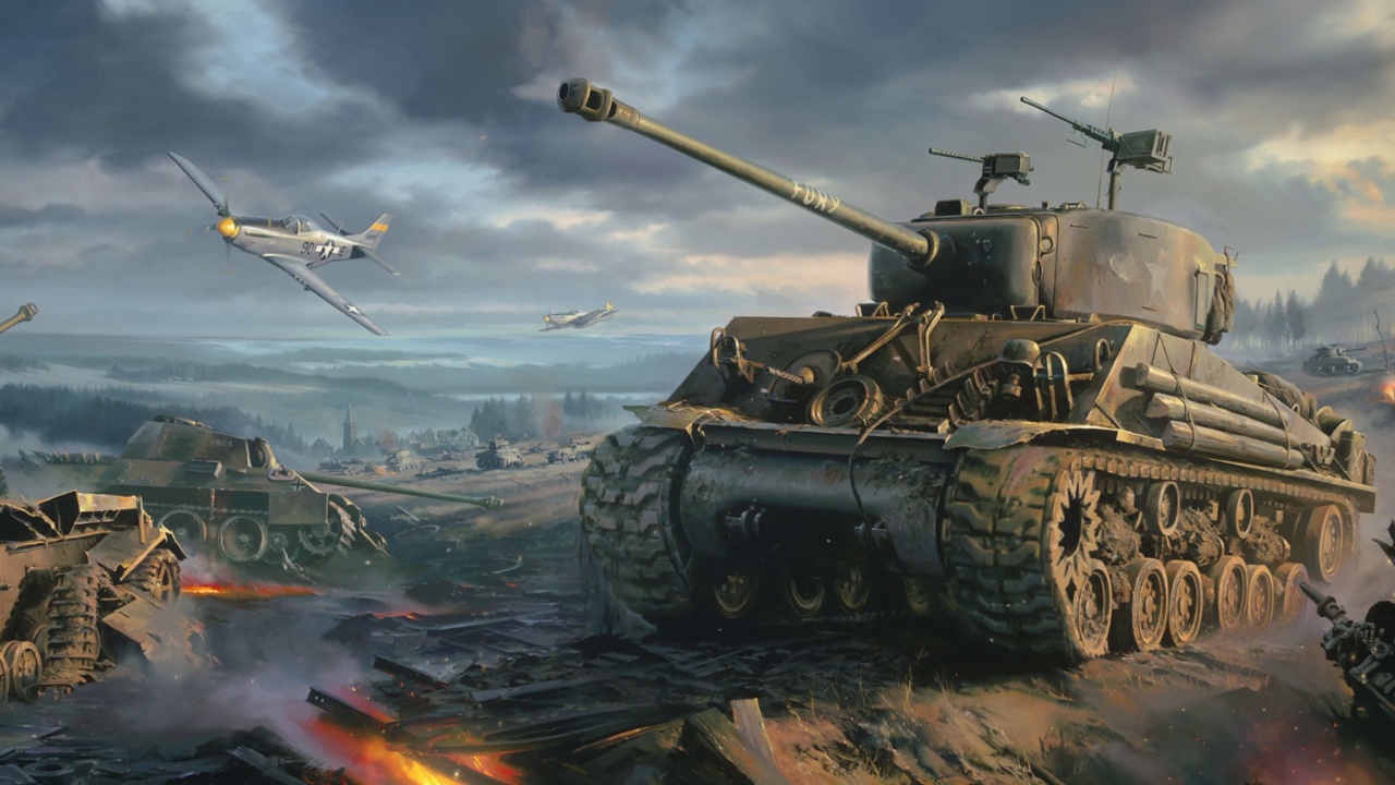 战场、电子游戏、坦克、战争、爆炸、绘画