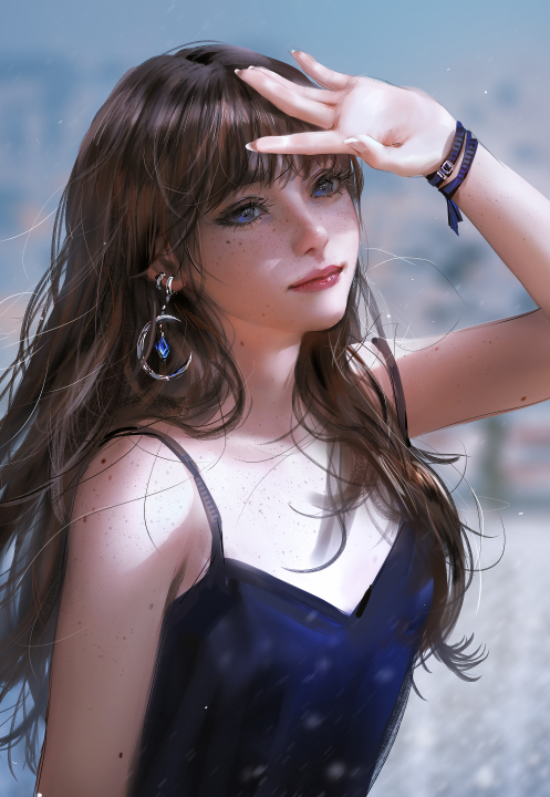 女人、梦幻女孩、模特、长发、数码艺术、艺术品、素描、数码绘画、插图、毛衣、简单背景、肖像、概念艺术
