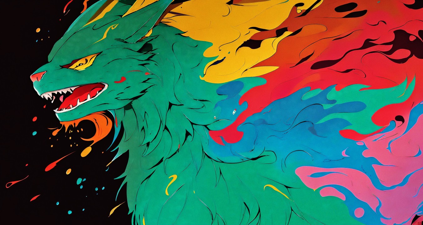 虚构、AI艺术、插图、暗、暗背景、青色、彩色、外星人、生物、简单背景、极简主义、电影