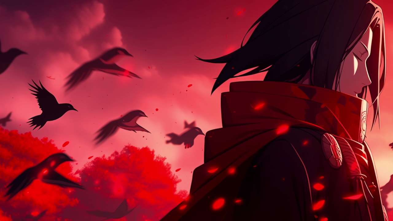 AI艺术、红色、火影忍者、雨
