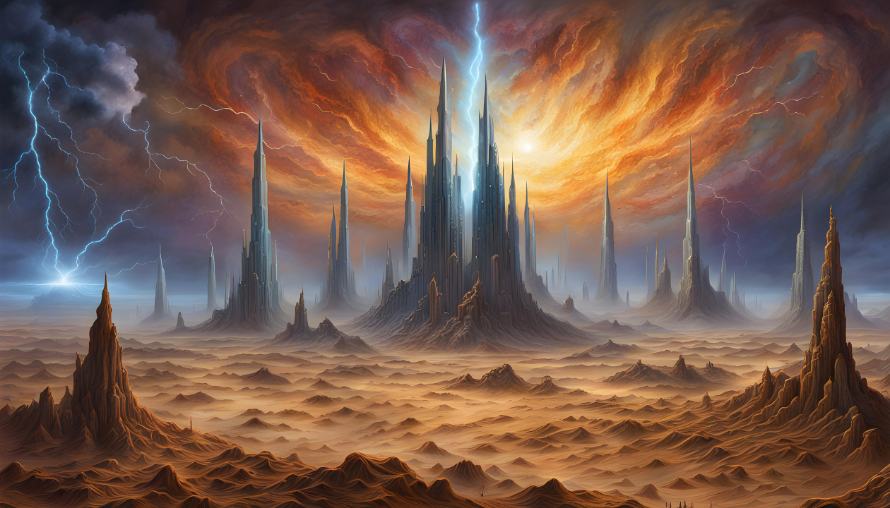 城市、景观、闪电、火灾、数字艺术、风暴、人工智能艺术