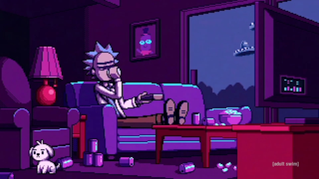 酷、粉色、合成波、氖、瑞克和莫蒂、插画