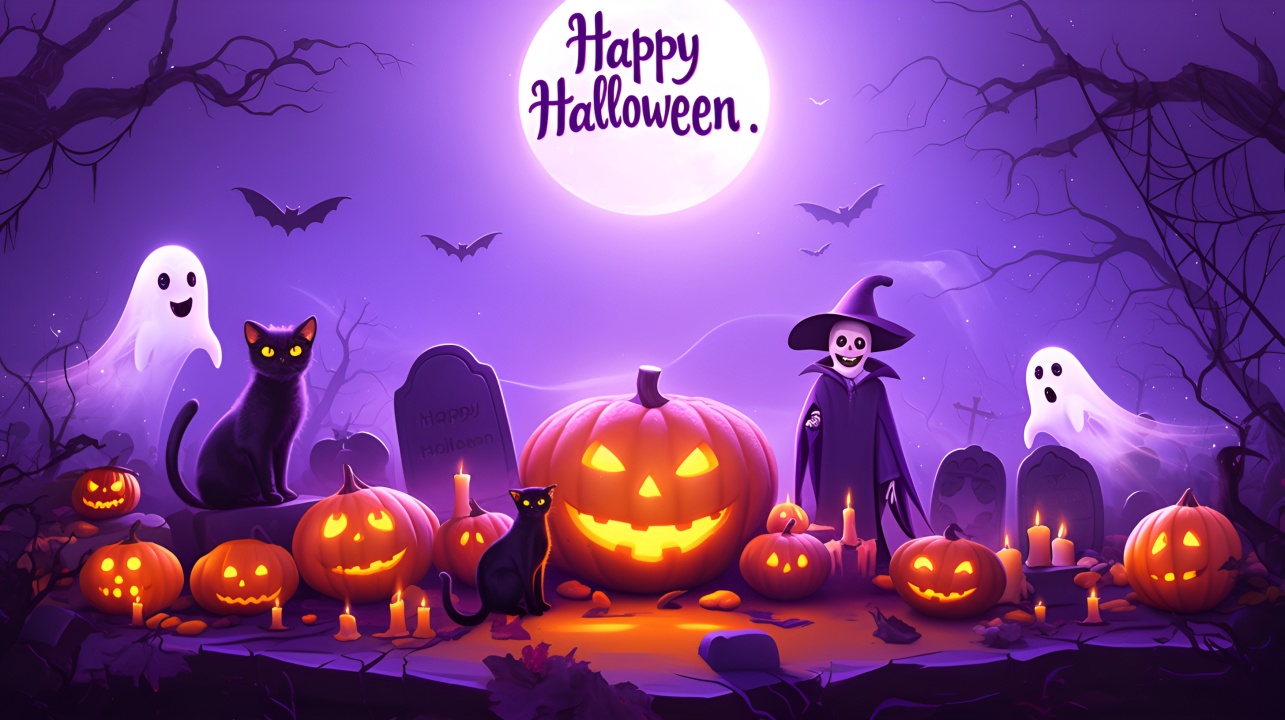 万圣节前夕、恐怖、夜晚、AI艺术、幽灵、奇幻艺术、云、树、天空、蜡烛