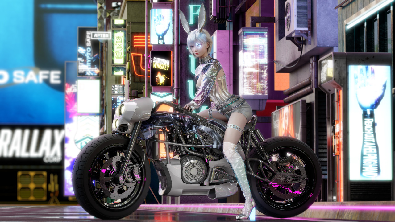 摩托车、汽车、未来主义、城市、城市灯光、艺术状态