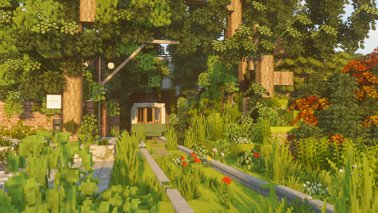 樱花、水、我的世界、电子游戏、立方体、天空、云、鲜花、树