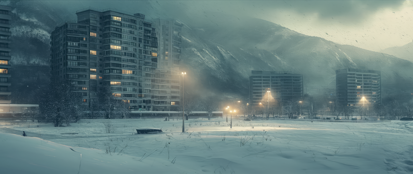 雪、广角、城市、风景、旅途中、冬天、数字艺术