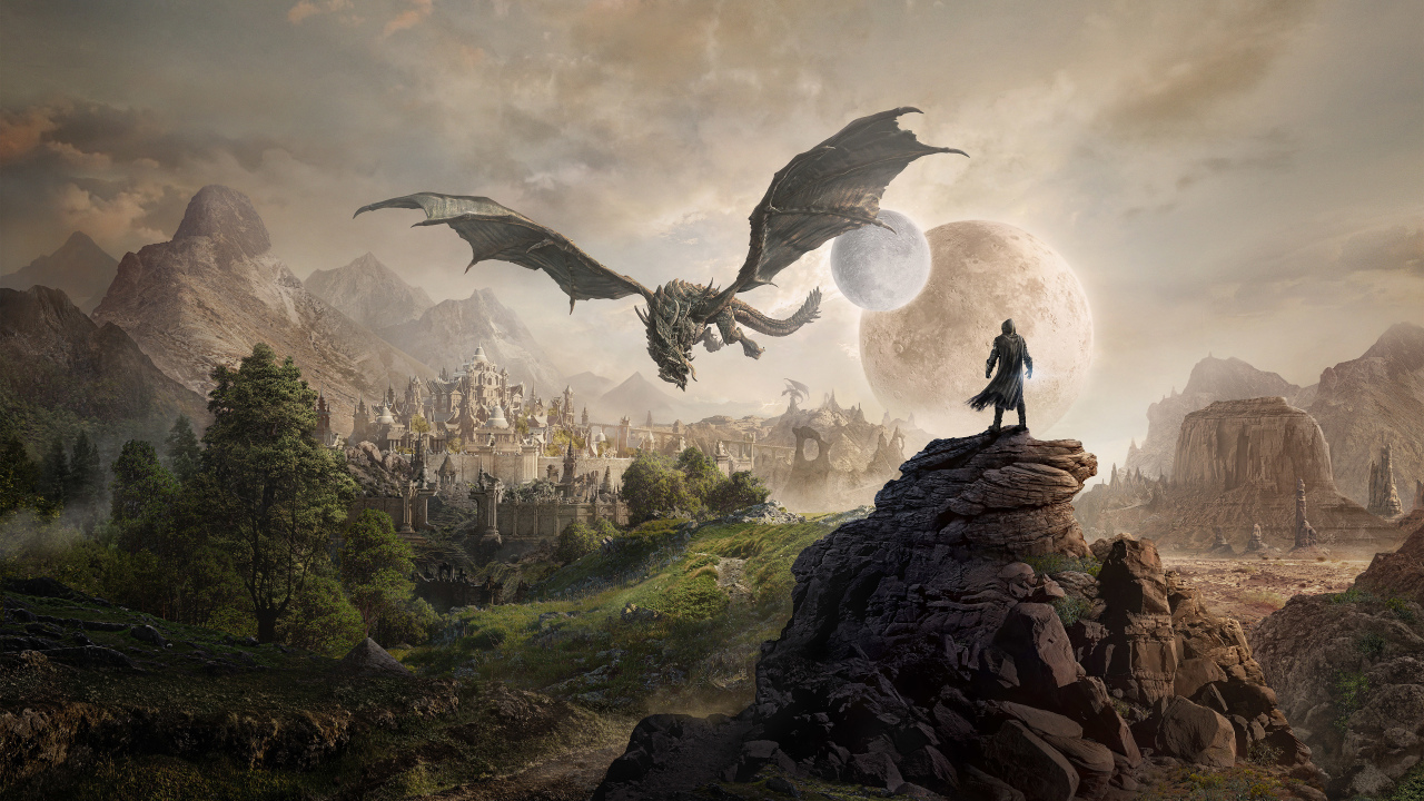 长老卷轴、游戏CG、龙、月亮、行星、城市