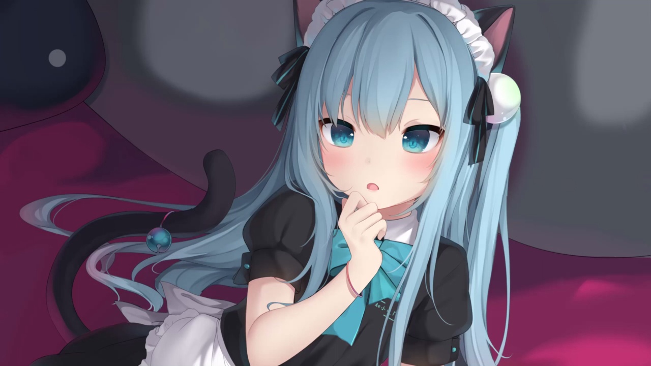 猫、动漫、简单背景、可爱、治愈、漫画、简约、蓝色