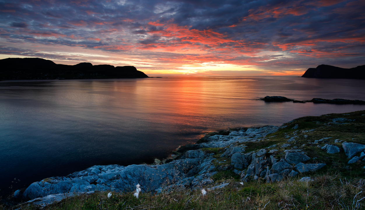 自然、风景、天空、云、岩石、草、水、海、山、地平线、红色云、远景、弱光