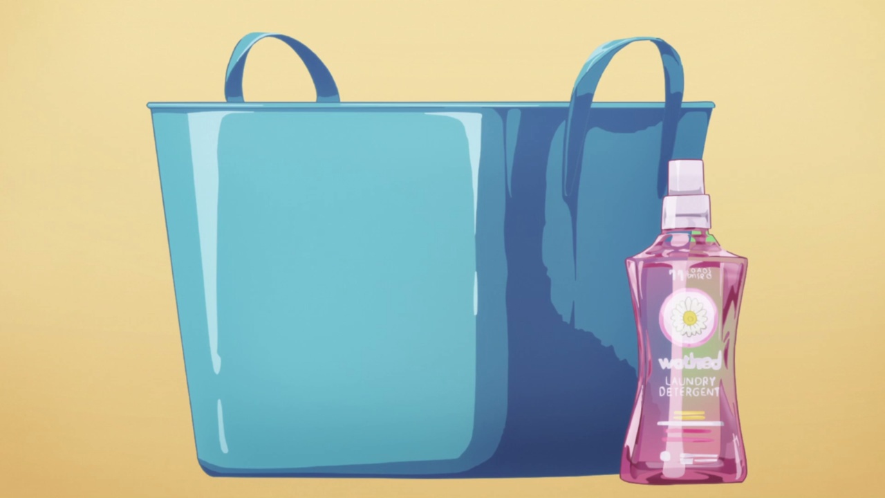 洗衣、动漫女孩、天空、云、植物、建筑、衣服