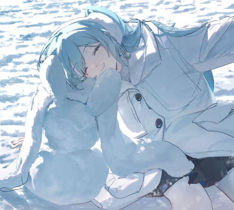 闭眼、微笑、外套、动漫、雪、动漫女孩、耳罩、初音、小提琴、冬天、兔子