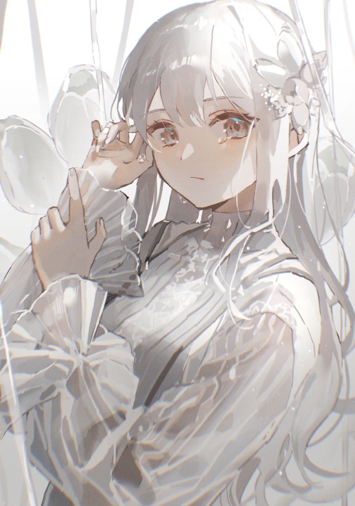 眼泪、动漫、动漫女孩、艺术品、银发、棕色眼睛