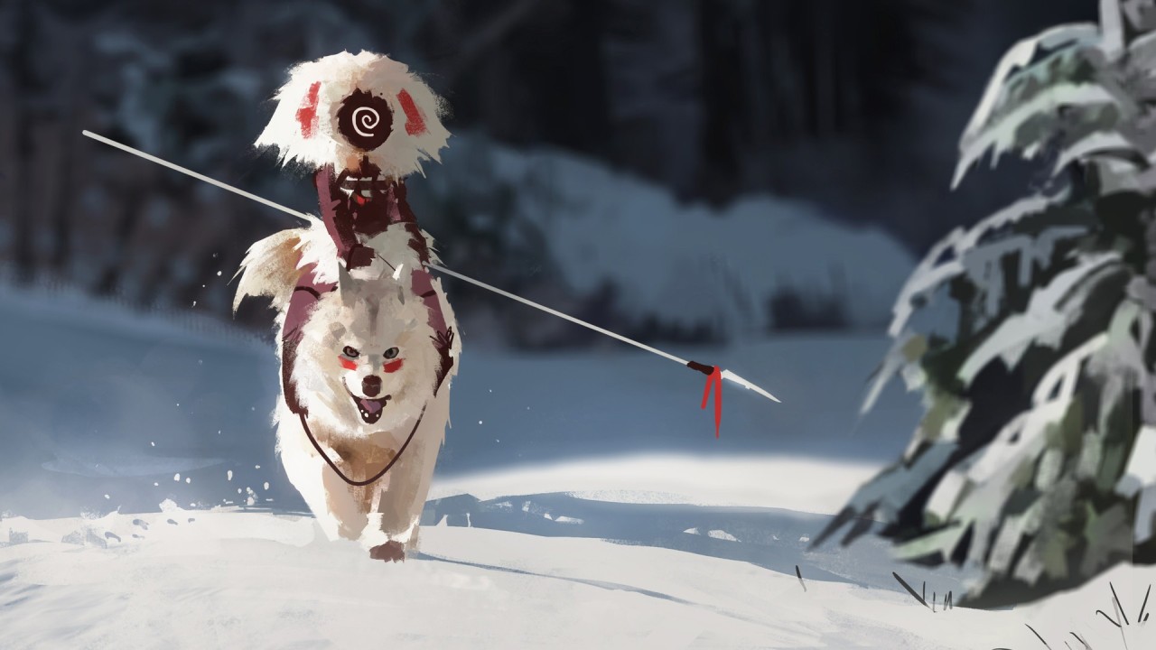 雪花、数字艺术、长矛、狼、幽灵公主