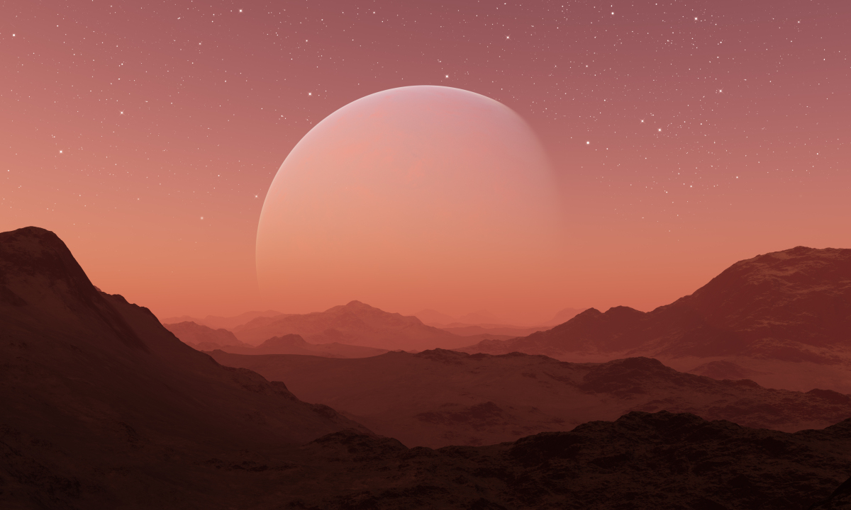 山脉、行星、月球、恒星、风景、科幻小说、太空、火星、薄雾