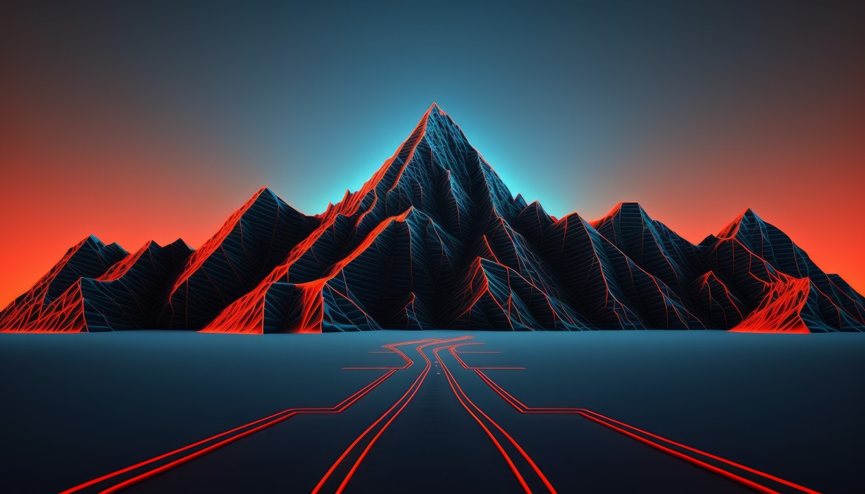 AI艺术、插图、山脉、合成波、简单背景、极简主义
