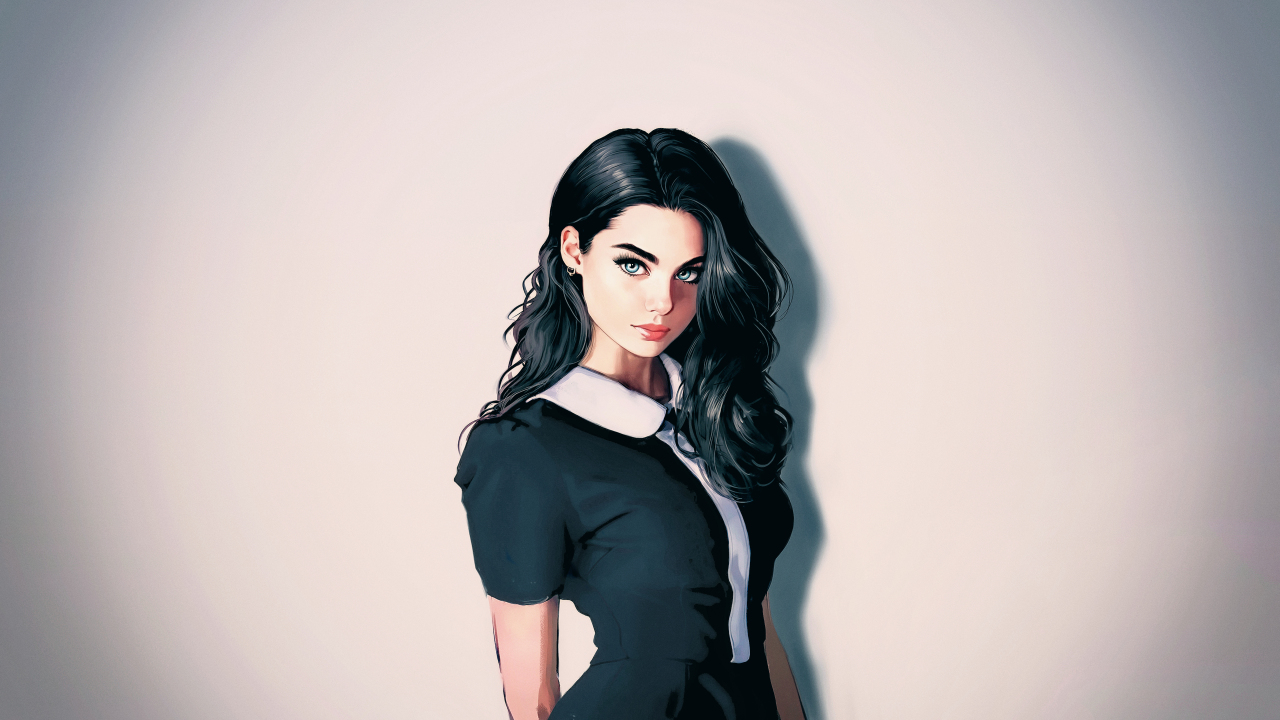 脸、黑发、领带、动漫女孩、棕色的眼睛、艺术