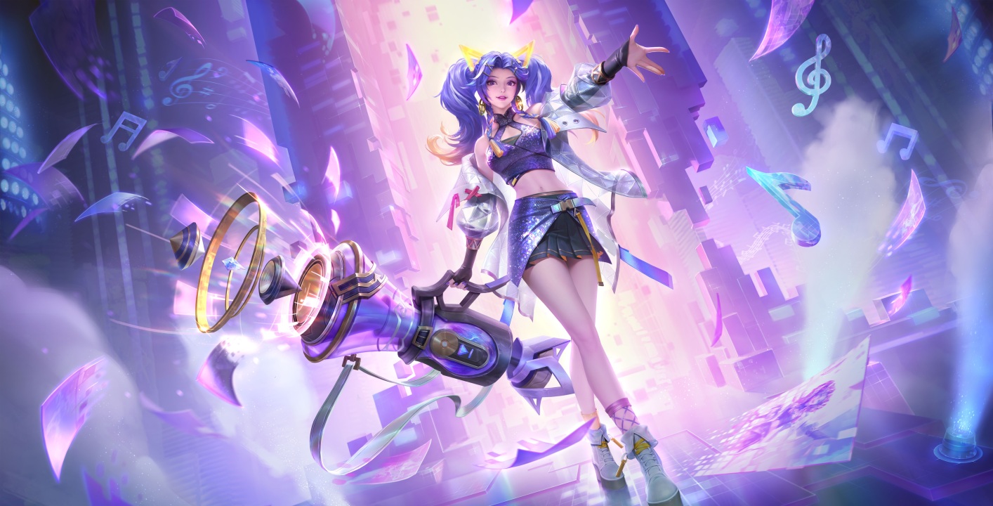 紫色头发、辫子、游戏CG、角色、王者荣耀、动漫女孩、双尾、粉色灯光、裙子