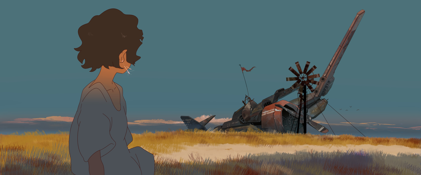 黑发、动漫、动漫女孩、插图、连衣裙、天空、草、水、树叶