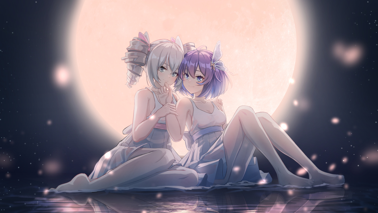 啦啦队、拥抱、娇小、白发、动漫、女孩、数字艺术、快乐、短裤、蓝色档案、阳光