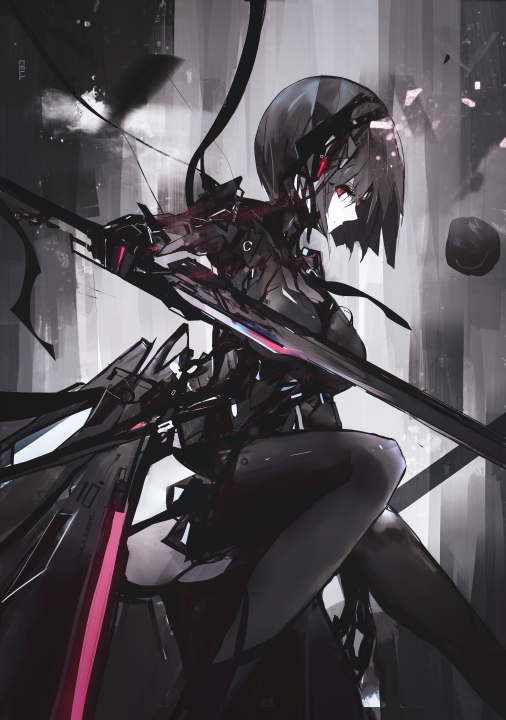 细胞(艺术家)、动漫、动漫女孩、数字艺术、艺术品、肖像、城市、武器