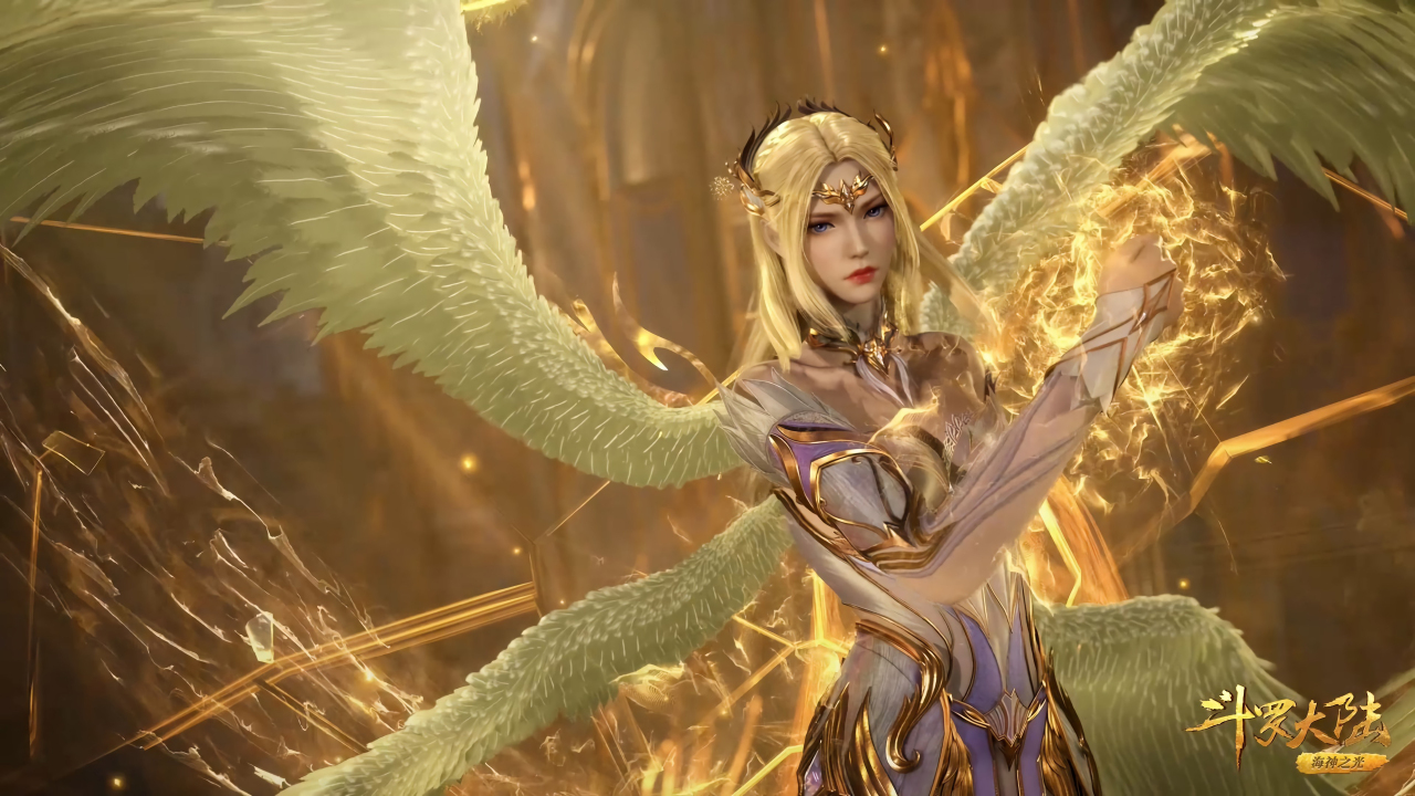 女性、金发女郎、蓝眼睛、红色、口红、幻想女孩、翅膀、幻想、斗罗大陆、游戏