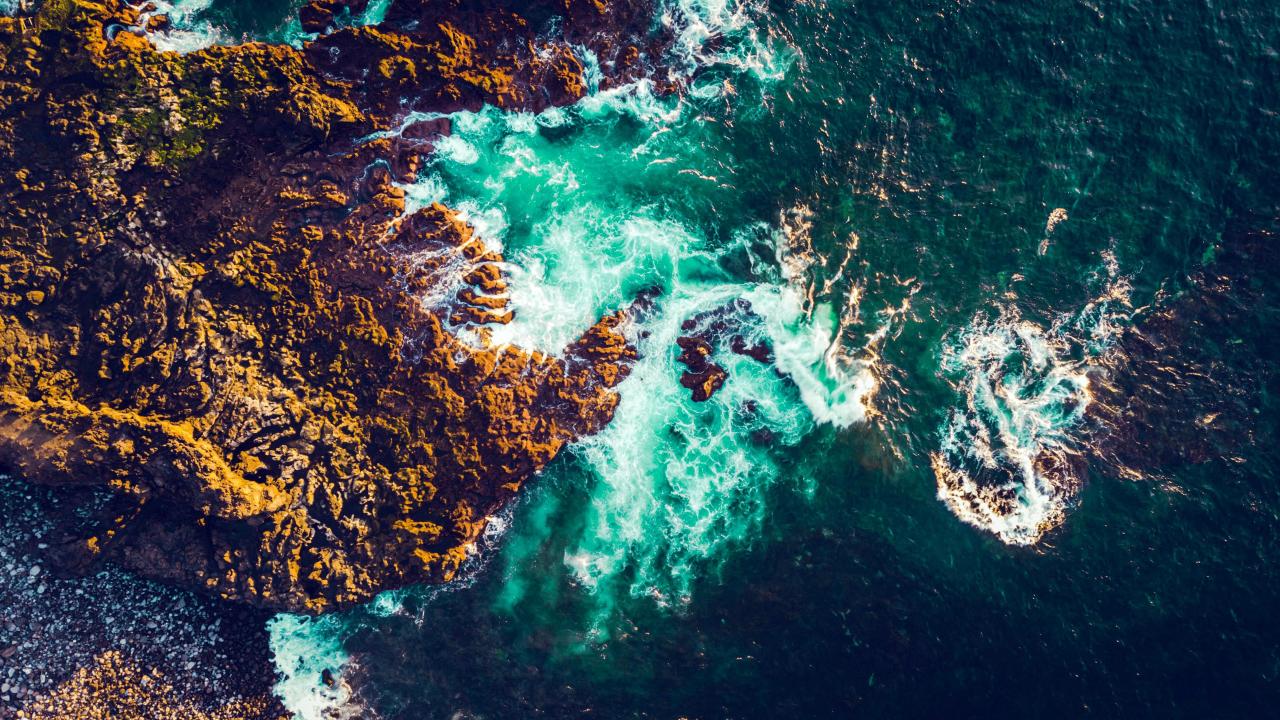 自然、岩石、海浪、海岸、鸟瞰、无人机照片、水