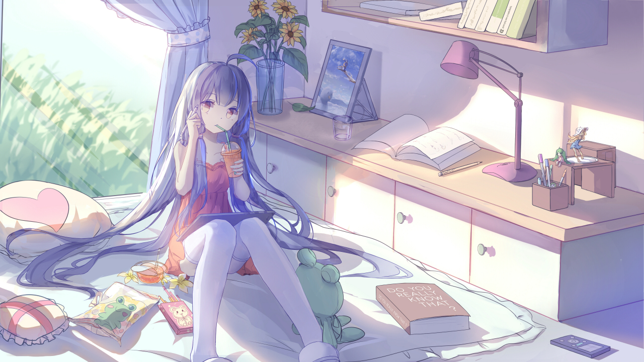 长发、动漫、女孩、室内、房间、夜晚