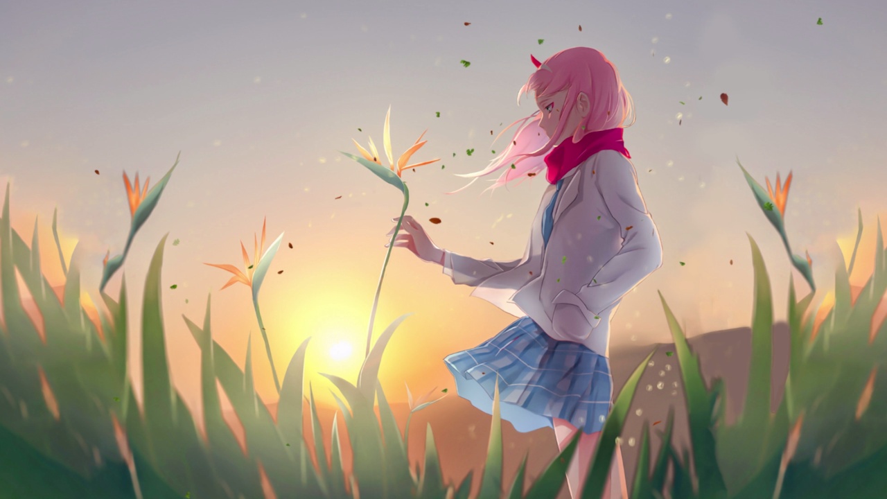 粉色、可爱的、悲伤的、动漫女孩、二次元