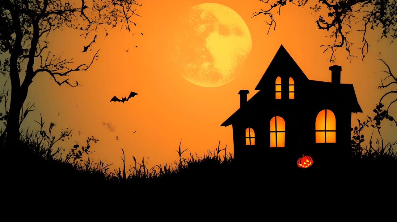 AI艺术、奇幻、艺术、房子、幽灵、新月、蝙蝠、夜晚、汽车、触手、多边形、蜘蛛、喵星人、灯、万圣节前夕、发光眼睛、月亮