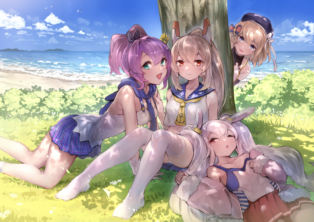 长发、短发、马尾辫、金发、蓝色头发、蓝色眼睛、绿色眼睛、剑、极光、蔚蓝巷、动漫、女孩、黄眼睛、裙子