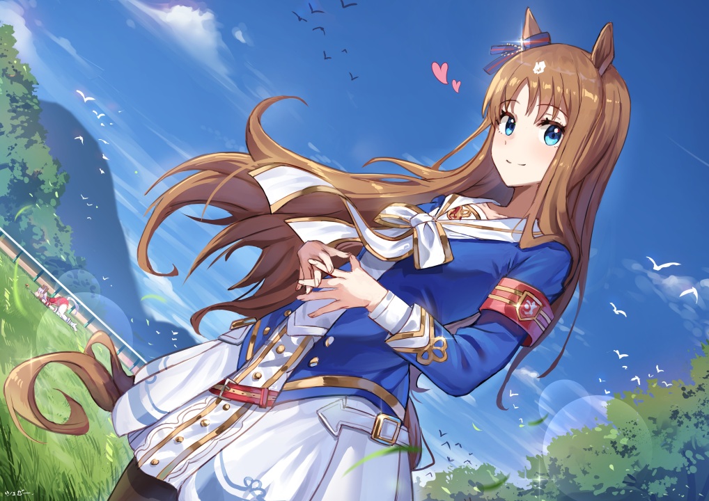 长发、深色头发、侧面、校服、云、天空、动漫女孩、动漫