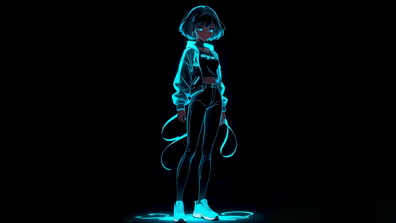 氖光,动漫女孩,黑色背景
