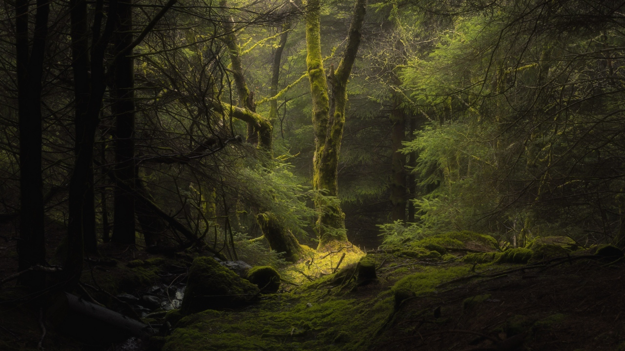 黑暗、森林、苔藓、深林、树木