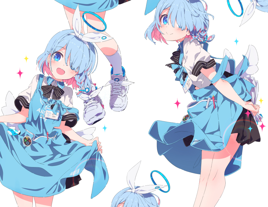 蓝色头发、虎牙、开心、萝莉、动漫、动漫女孩、电脑贴纸、4K贴纸