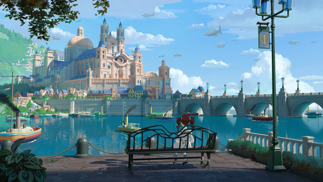 AI艺术、河流、城市、桥、城堡、云、建筑、水、船舶、天空