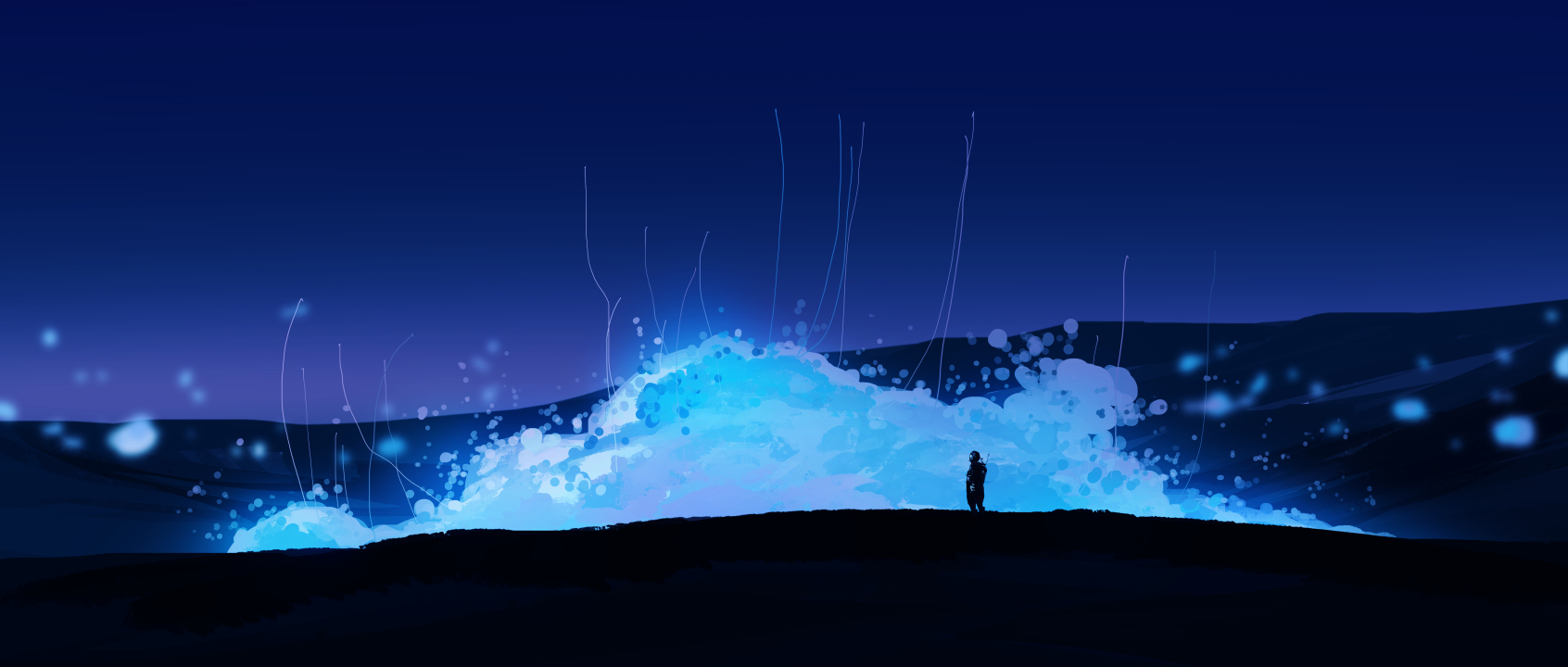 优雅、数字艺术、艺术作品、插图、数字、绘画、抽象、宽屏、超宽、蓝、山脉、天空