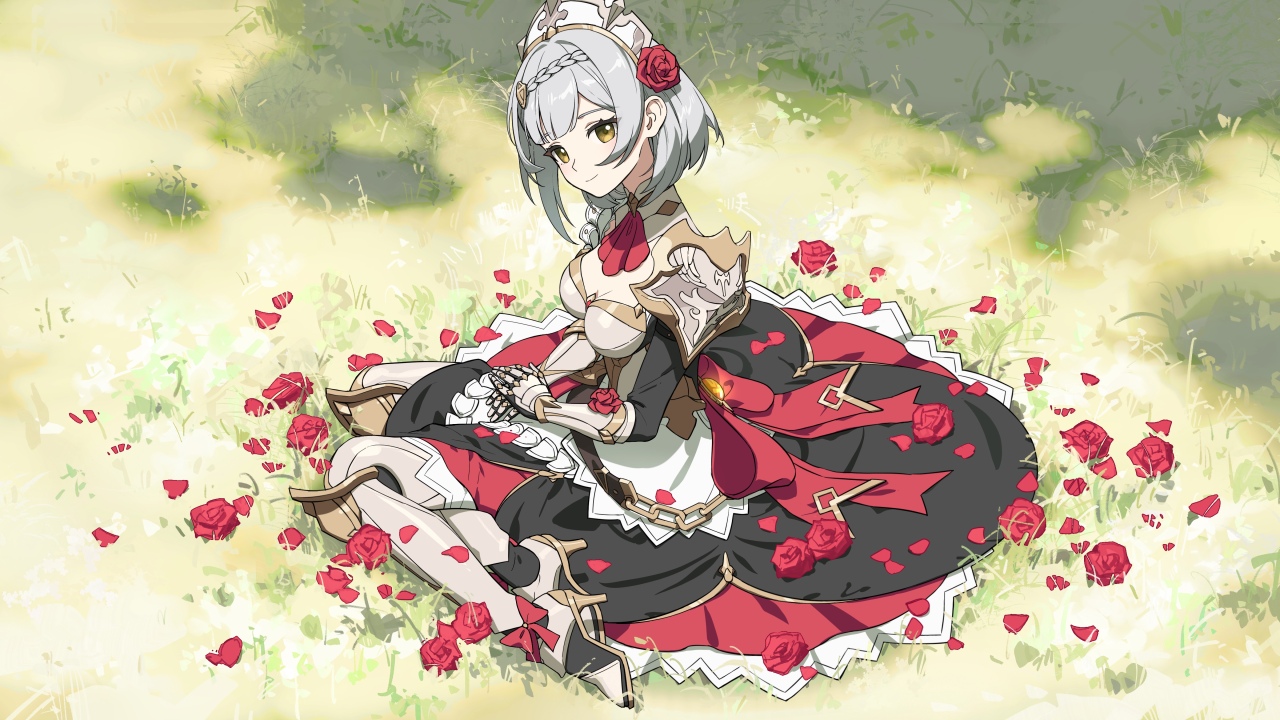 长发、闭眼、站立、动漫、动漫女孩、连衣裙、羽毛、葡萄酒、酒杯、原神