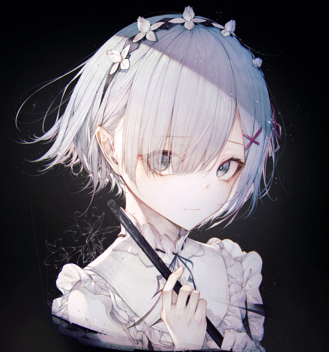 蓝头发、蓝眼睛、雷姆、零、从零开始的异世界生活、动漫女孩、黑色背景、极简主义、简单背景、女佣、女佣服装