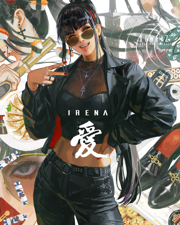 女性、原创人物、时尚、数字艺术、黑猫、艺术品、露脐上衣、牛仔裤