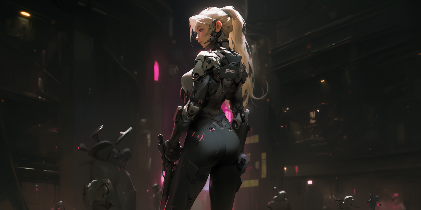 妇女、刺客、金发女郎、人工智能艺术、动漫、赛博朋克、武器、插图