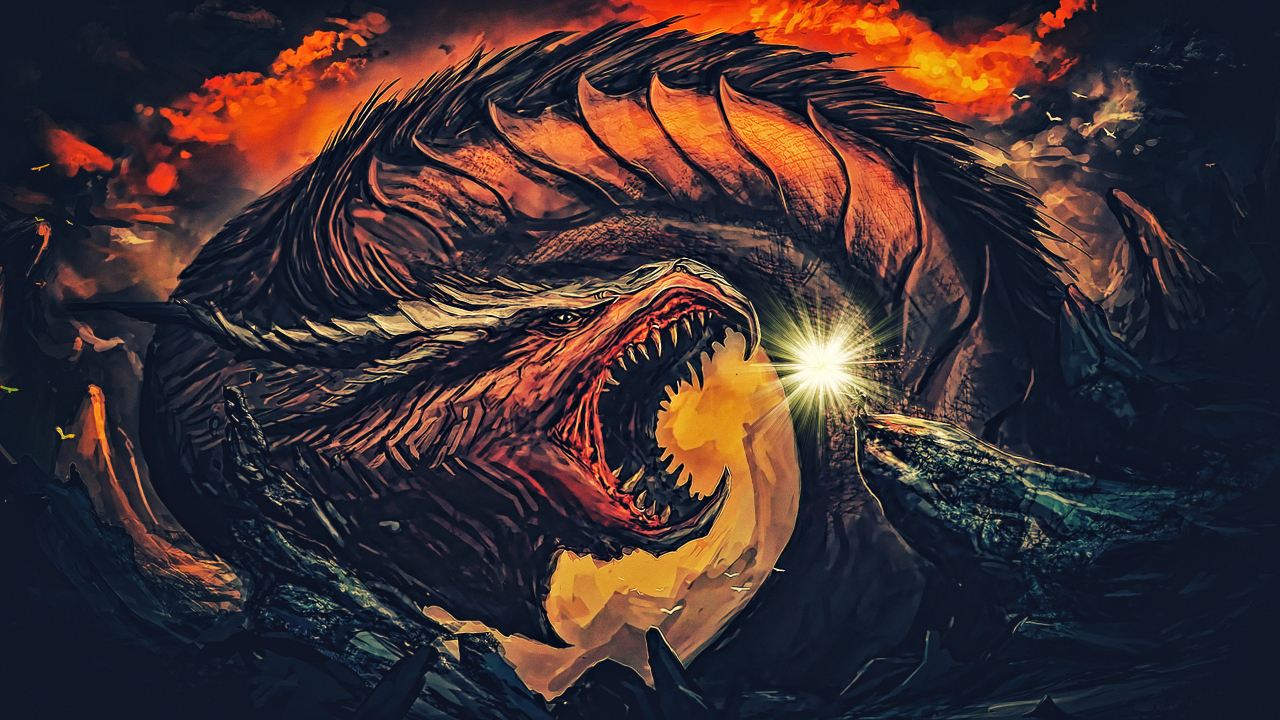 龙、奇幻艺术、夜晚