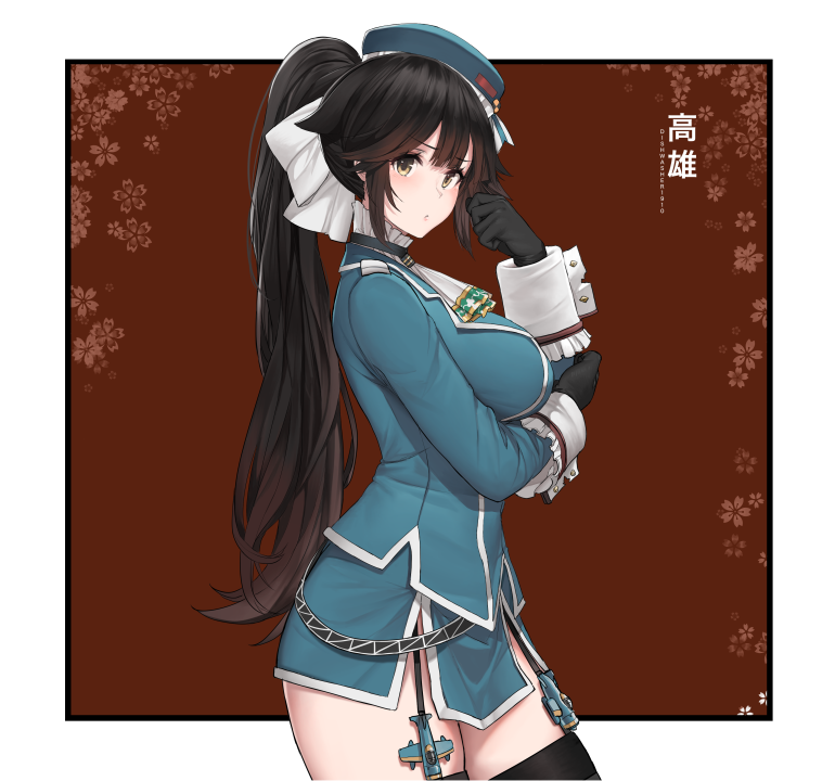 黑发、长发、蔚蓝档案、黄色眼睛、黑色、连衣裙、高跟鞋、角楼、动漫、女孩、水、云、天空