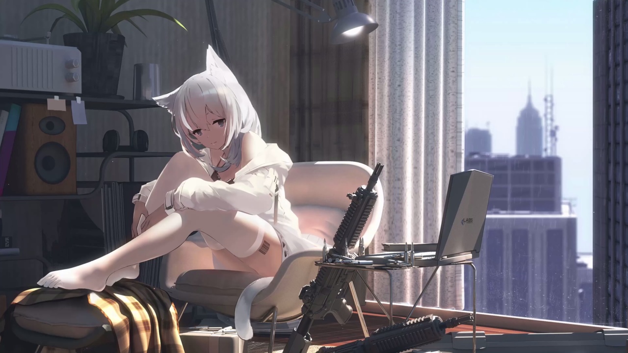 动漫、女孩、艺术作品、枪、猫耳、猫女