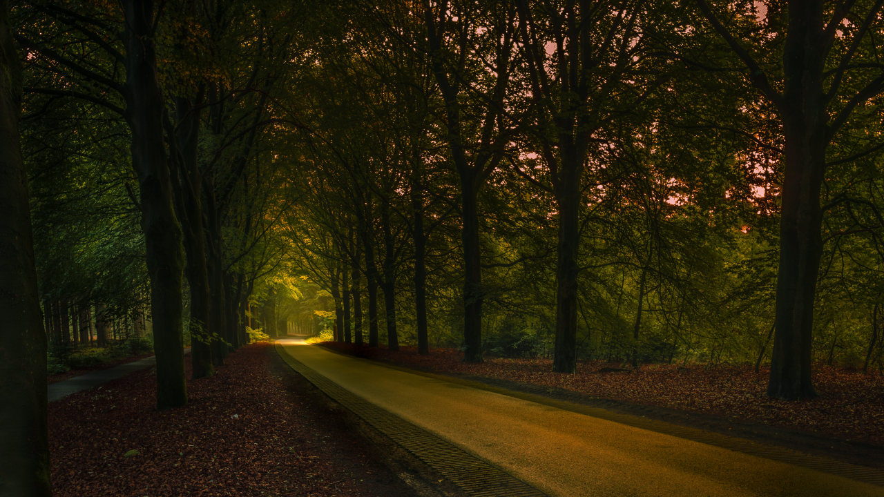 自然、树木、道路、沥青、树叶、人行道、落叶、森林、隧道