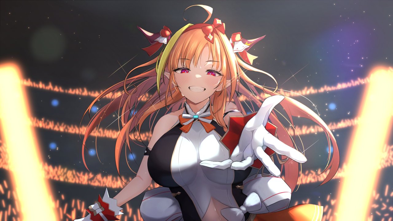 金发、红眼睛、微笑、动漫、动漫女孩、虚拟、龙女、兽耳、角