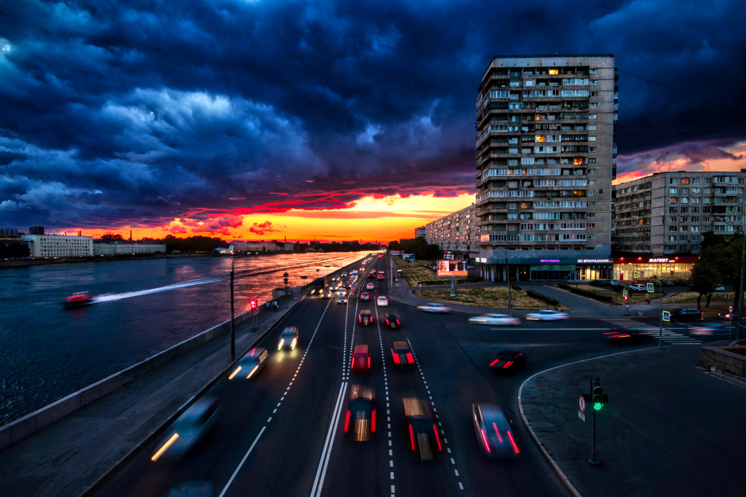 道路、城市、建筑、夜晚、汽车、灯光
