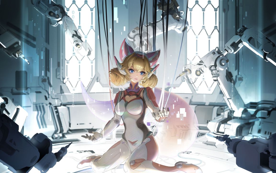 蓝眼睛、王者荣耀、赛博朋克、白色、紧身衣、动漫、女孩、兽耳